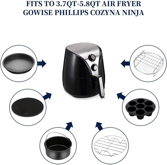 Air Fryer Accessories 11PCS for Phillips Ultrean Ninja Vremi Air Fryer, Fit All 3.7QT-4.0-5.8QT Power Deep Hot Air Fryer with Cake Barrel, Pizza Pan