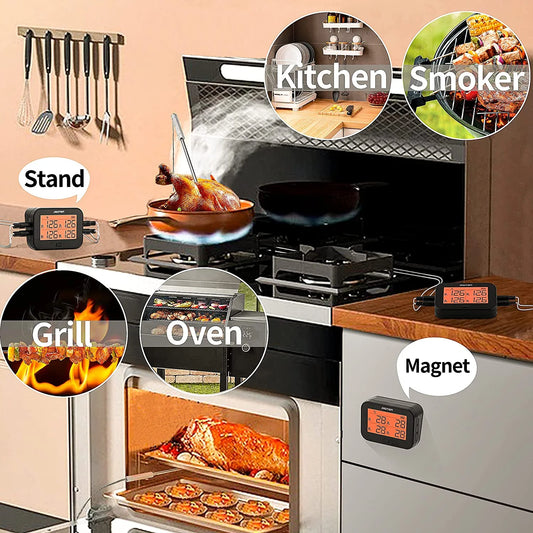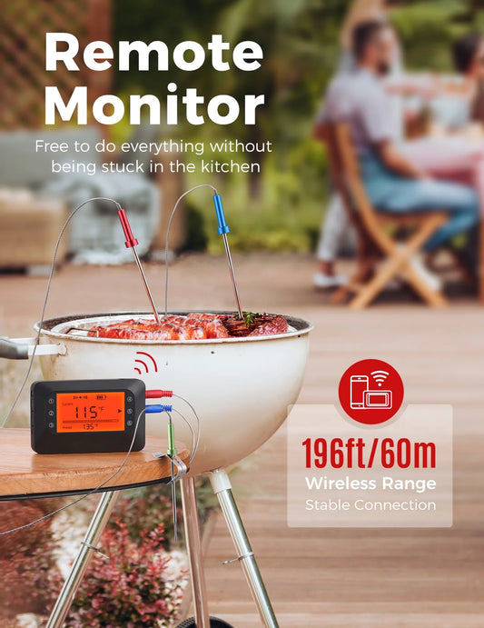 Bluetooth Meat Thermometer with 4 Probes, Grill, Backlight, Remote Monitor