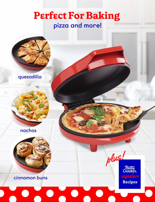 8" Travel Pizza Maker Plus, Indoor Electric Grill with Insulated Travel Bag, Nonstick Pan for Pizzas, Quesadillas, Nachos and More, Pizza Machine for Delicious Meals and Snacks, Red