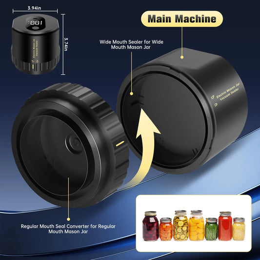 Mason Jar Vacuum Sealer, Electric Cordless Mason Jar Vacuum Sealer for Food Storage and Fermentation, Vacuum Sealer with Can Opener for Wide-Mouth & Regular-Mouth Mason Jars