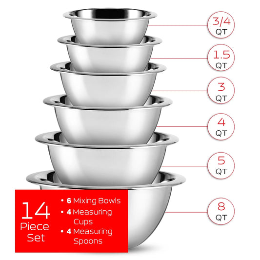 Premium Stainless Steel 6Pc Mixing Bowls with Measuring Cup Set, Nesting Mixing Bowls