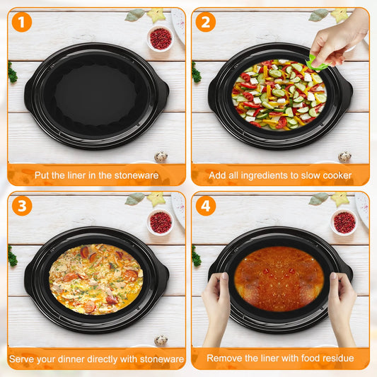 Silicone Slow Cooker Liners Compatible with 6-8Qt Crockpot and Slow Cooker